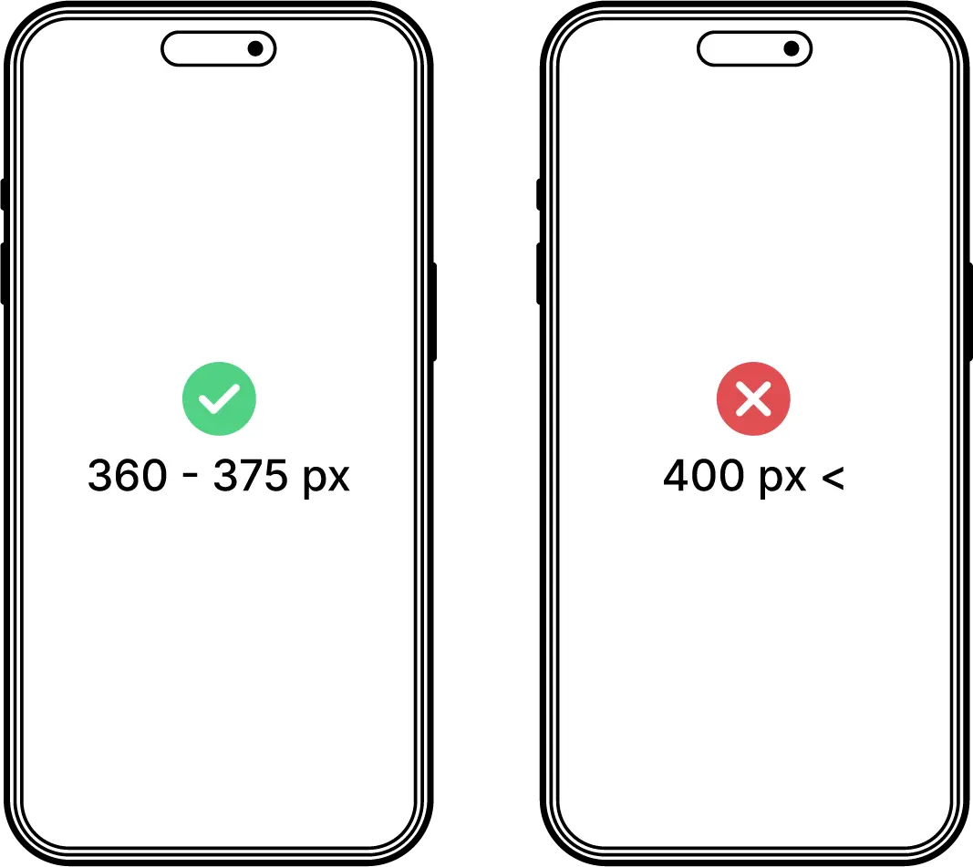 I originally designed the app at 430px width (iPhone Pro Max). It looked perfect on iPhones, but once built, the fonts appeared too large on other devices. Confused, I consulted the mobile dev team. After some research, they explained: