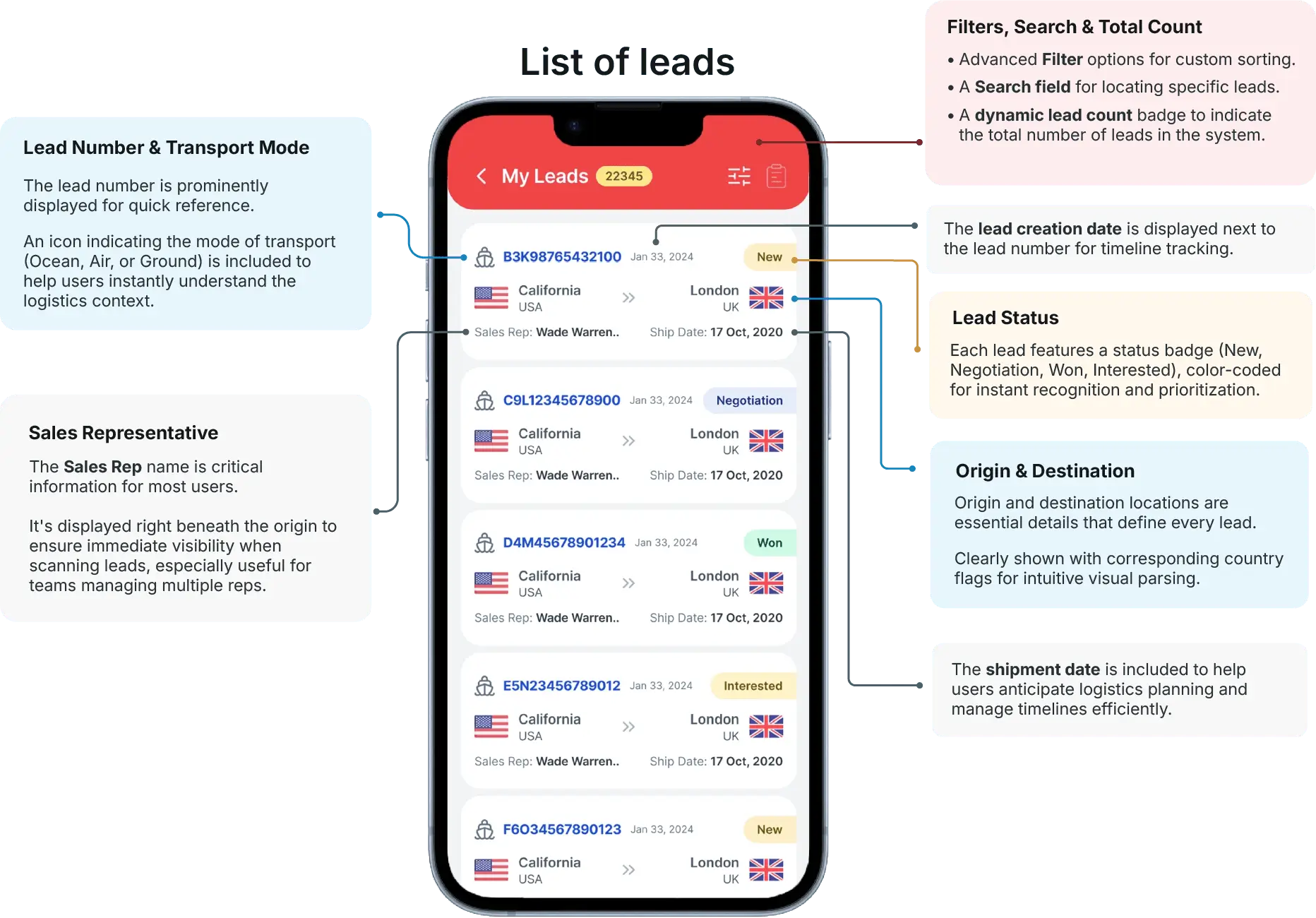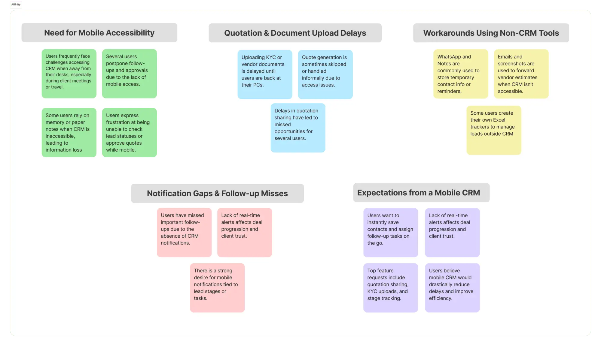 We interviewed 5 users across sales and operations, and also studied feedback patterns from competing CRM products in logistics.