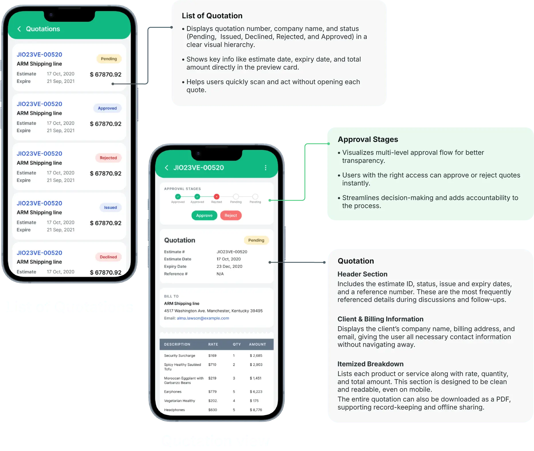 Access to vendor estimates and pricing approvals on the go