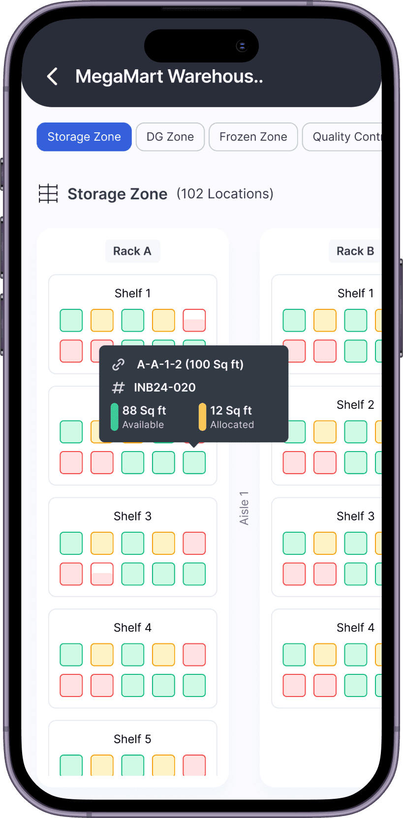 Real warehouse workflows like bin mapping, stock lookup, and zone management